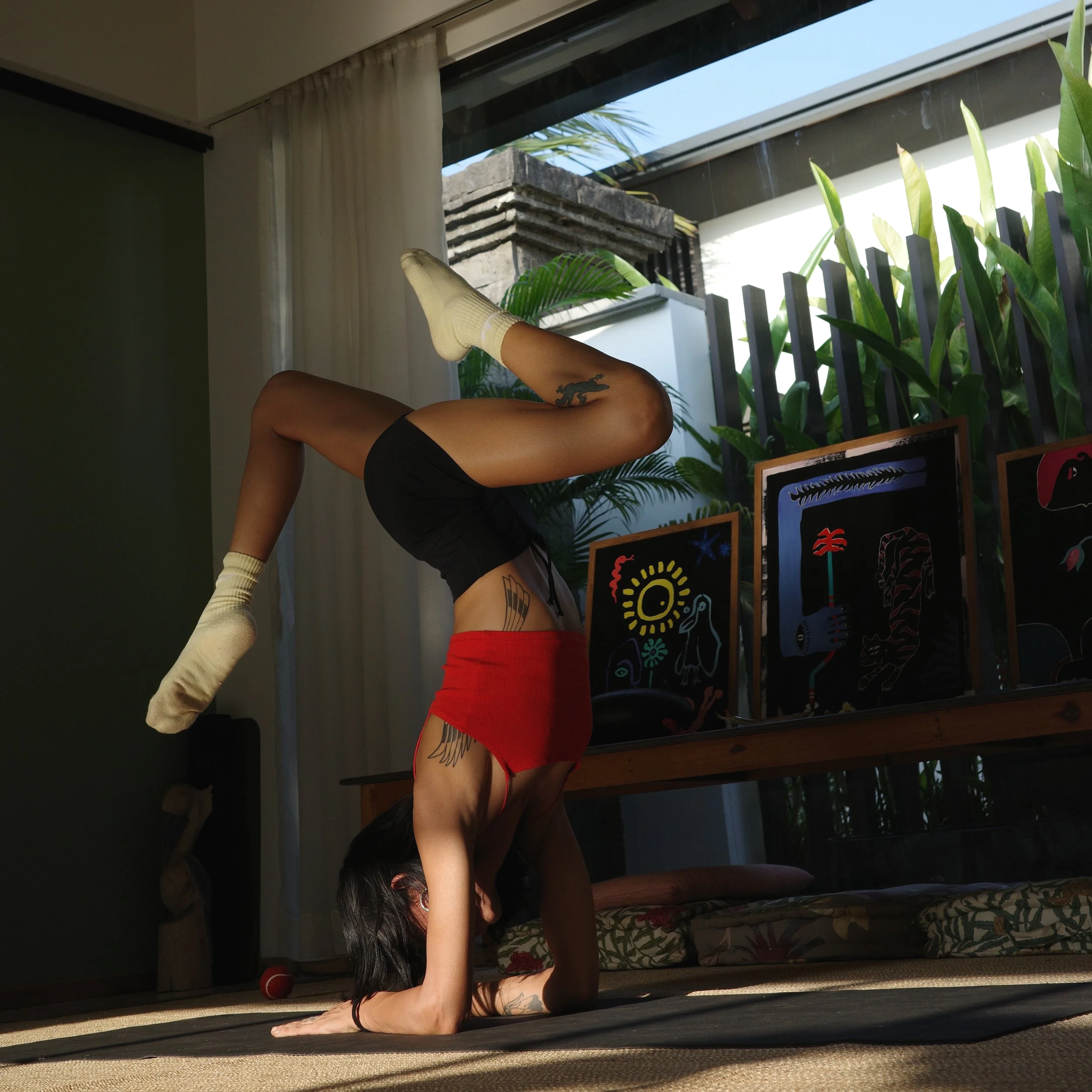 Exploring the potential of our physical form — upside is an aerial movement module that prepares the body for flight — enabling you to climb, fold, invert and transition into postures + sequences on the apparatus (aerial silks and hoop).
